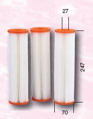 Náhradní kartušová vložka, průměr 70 mm x 247 mm x 27 mm. Plocha 0,6m2, průtok 3m2/h.